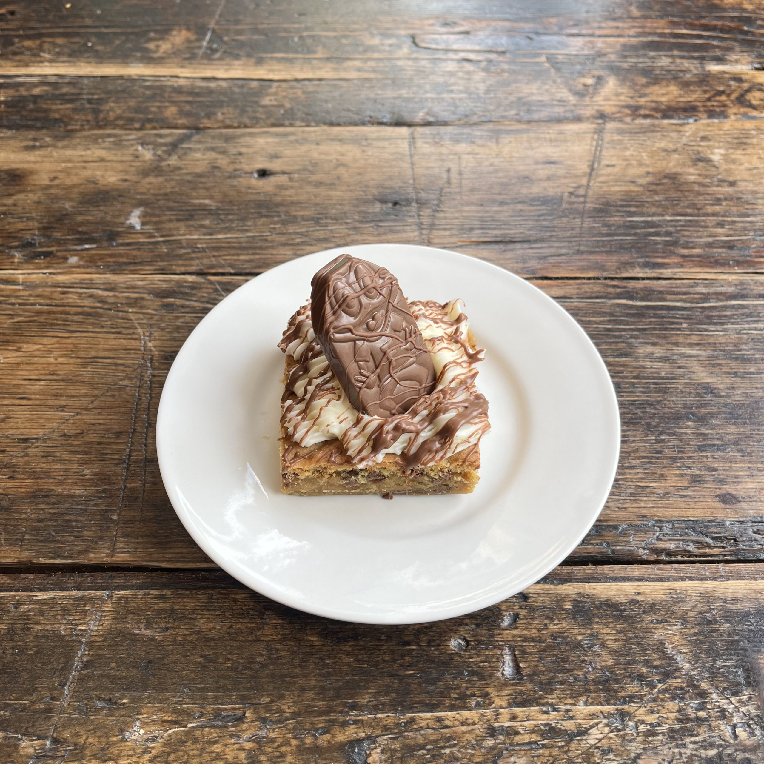 Treat yourself to a delectable treat consisting of a cookie block that is both soft and gooey, enhanced with the irresistible flavors of vanilla frosting and Chocolate Freddo bar.