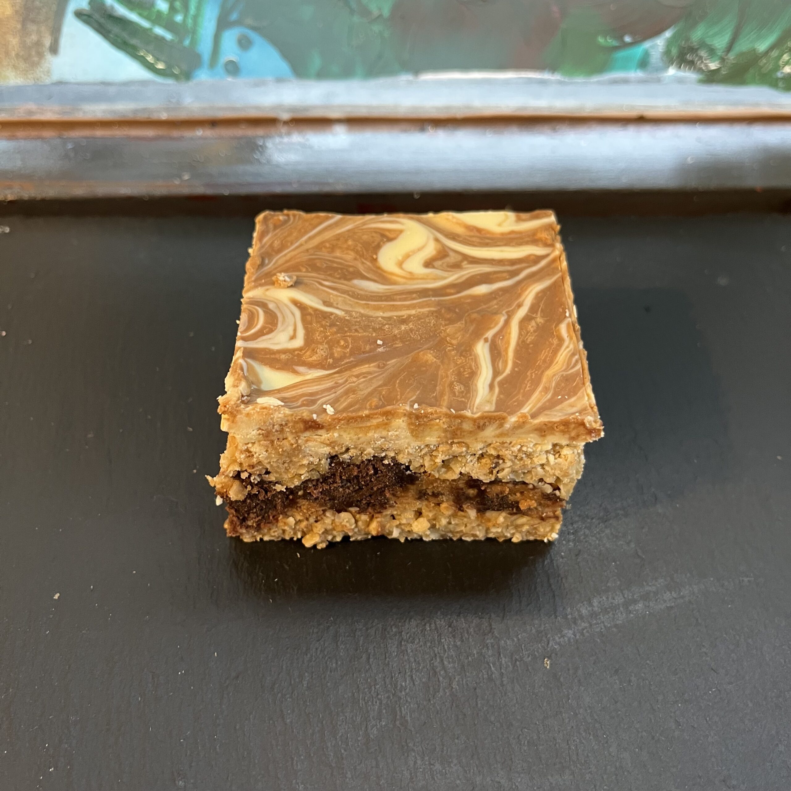 Indulge in the delightful combination of Flapjack Brownie and Lotus Biscoff, a treat that perfectly marries the chewy, hearty texture of flapjacks with the rich, fudgy essence of brownies. This dessert features layers of golden oats, which provide a satisfying chewiness, harmoniously blended with the deep chocolate flavour of brownies, creating a decadent experience in every bite. The addition of Lotus Biscoff cookies introduces a unique caramelised taste and a hint of spice, elevating the overall flavour profile. Topped with a drizzle of Biscoff spread, this creation not only looks enticing but also offers a delightful crunch that contrasts beautifully with the soft, moist brownie base. Perfect for sharing or enjoying as a personal treat, this dessert is sure to satisfy any sweet tooth and leave you craving more.